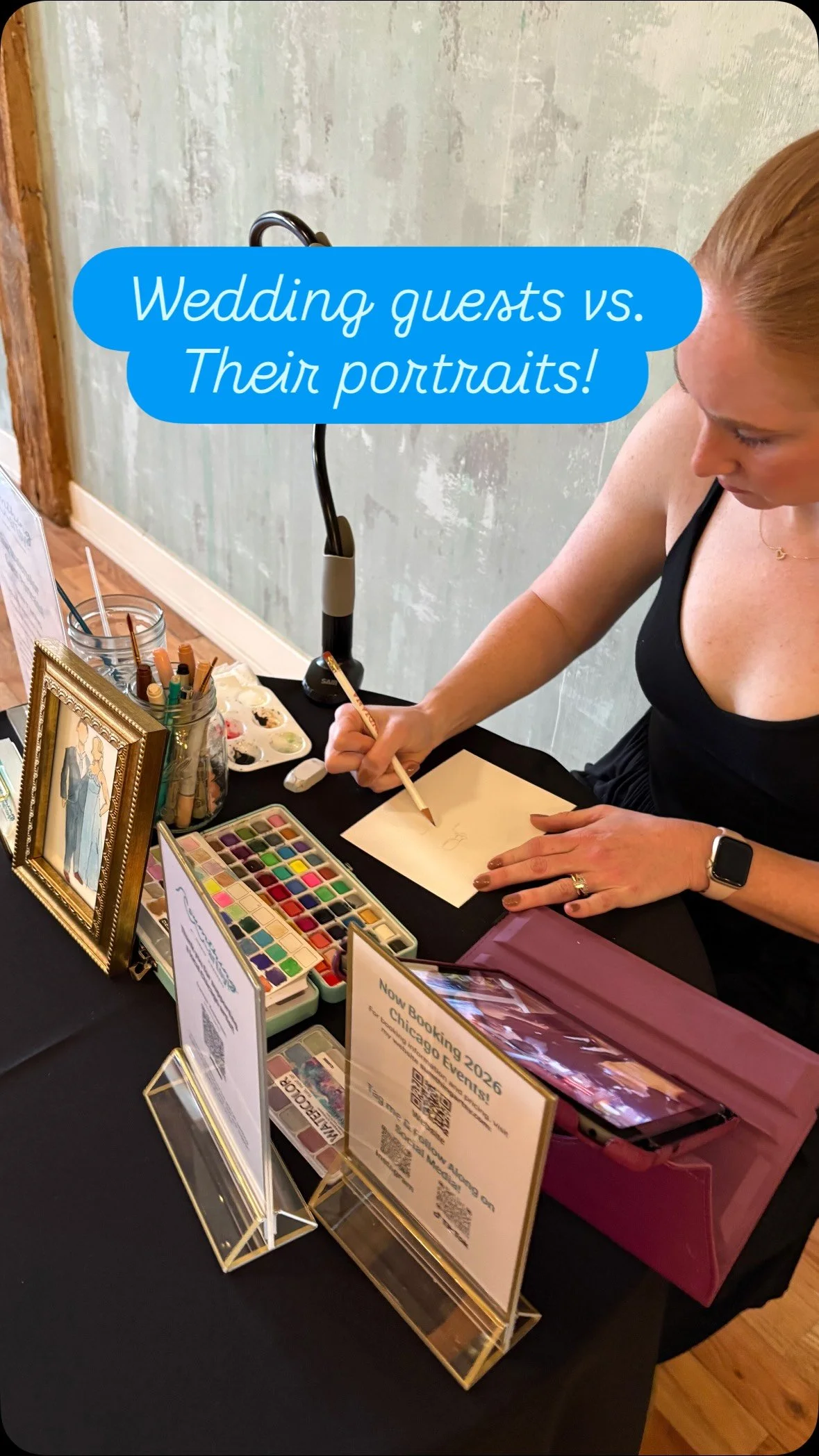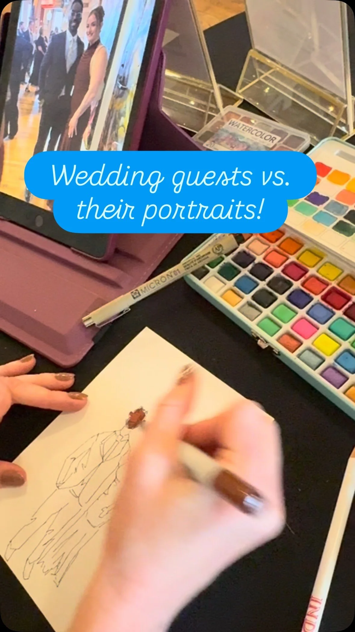 After years working in graphic design, I rediscovered my love for painting and knew I wanted to create something more personal and hands-on. Live guest portraits bring a fun, interactive and personal element to your celebration, and I want to be a part of that!